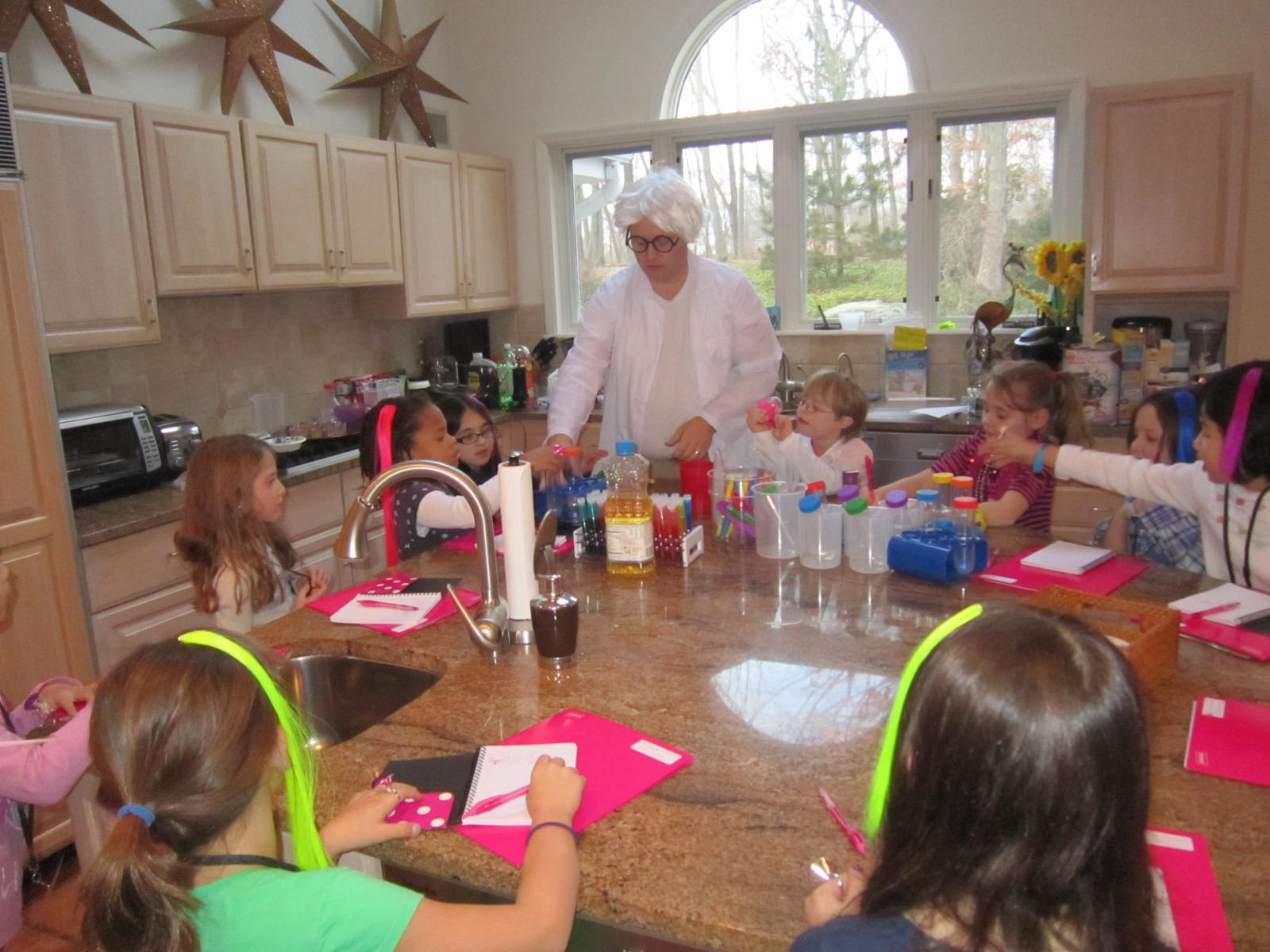 For Mad Math we used frogs with sticky tongues to catch flies. It was a game I happened to find at a local party store. Then they had to count up how many flies they caught and determine if they had more or less than the other students. For Home Ick (Home Economics), I had them take chocolate Jello Pudding and mix in gummy worms. And for Weird Science, which was a big hit, I had my husband dress up