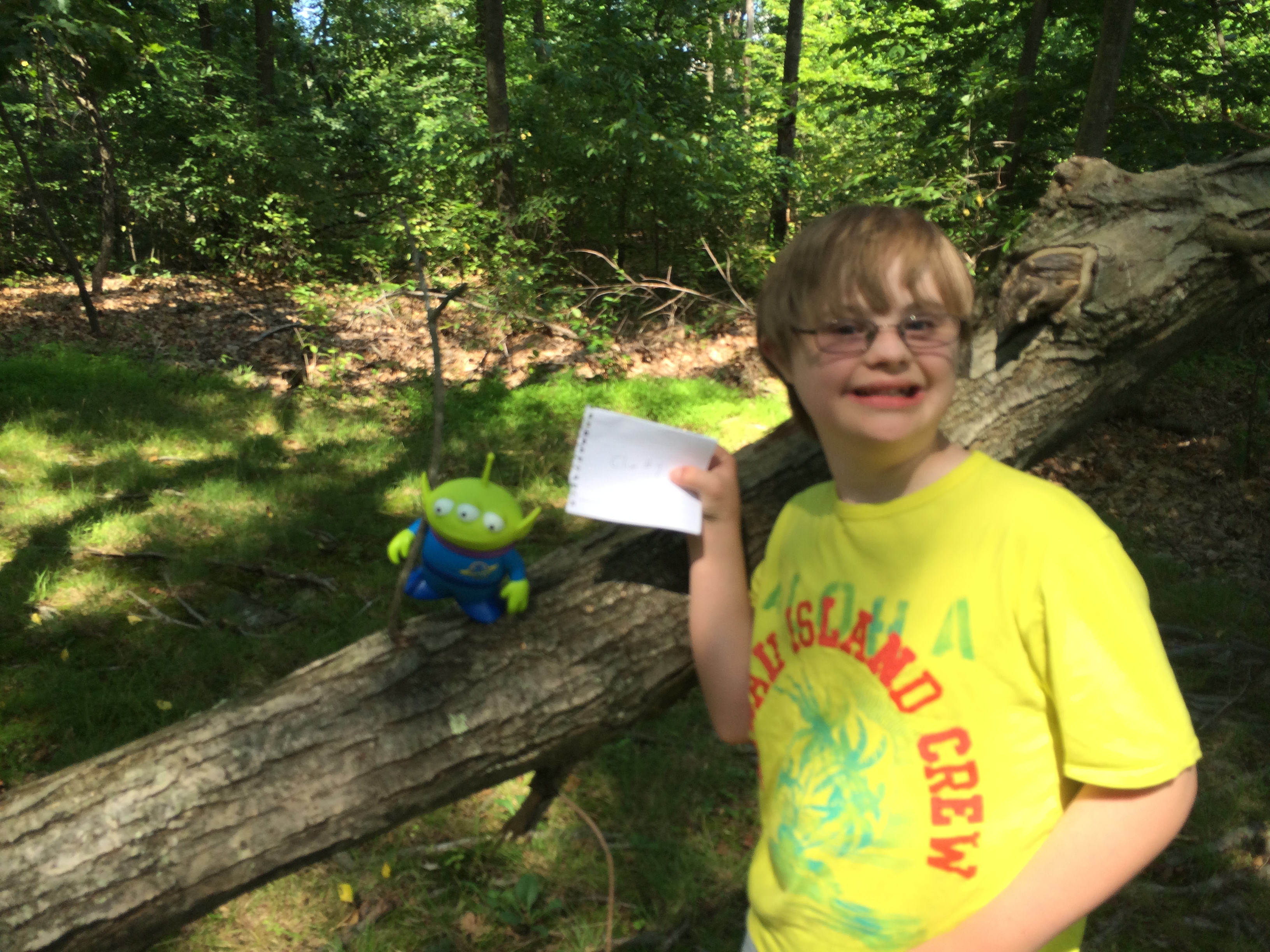 One activity I always find motivates kids to not only get outside and play but also to stimulate their creative problem-solving capabilities is the good, old-fashioned treasure hunt. The great thing about a treasure hunt is that no two are alike and you can really switch up the types of clues you want your kids to solve. This past afternoon, I guess I felt extra energetic, and I put together two completely different treasure hunts for my kids. The first was based on Toy Story with the object being to find Woody’s cowboy hat that Emperor Zurg had stolen. The clues were riddles and I hid each clue with a different Toy Story character. So, the excitement was not only in finding the clues but also in coming upon each character. Here’s an example of the clue this green alien was holding: “Take me to your leader, but not before finding your next clue. A cowgirl has it and she’s riding a tree split in two like it’s a horse.”